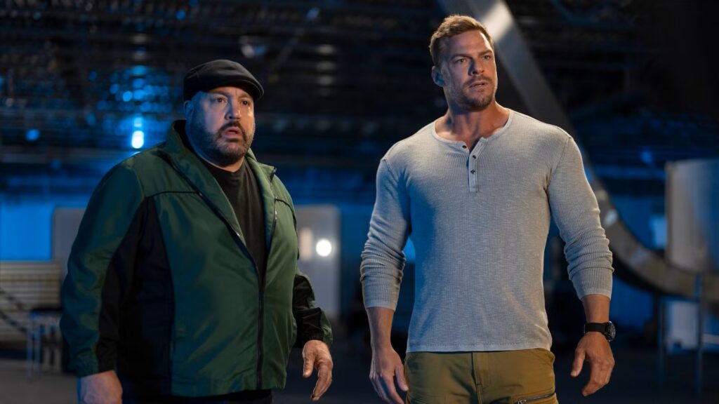 Face à lui, Alan Ritchson est une anomalie volontaire. Connu pour ses rôles physiques, presque surhumains, il incarne Jeff comme une caricature consciente : un père au foyer dont le corps semble appartenir à un autre film.